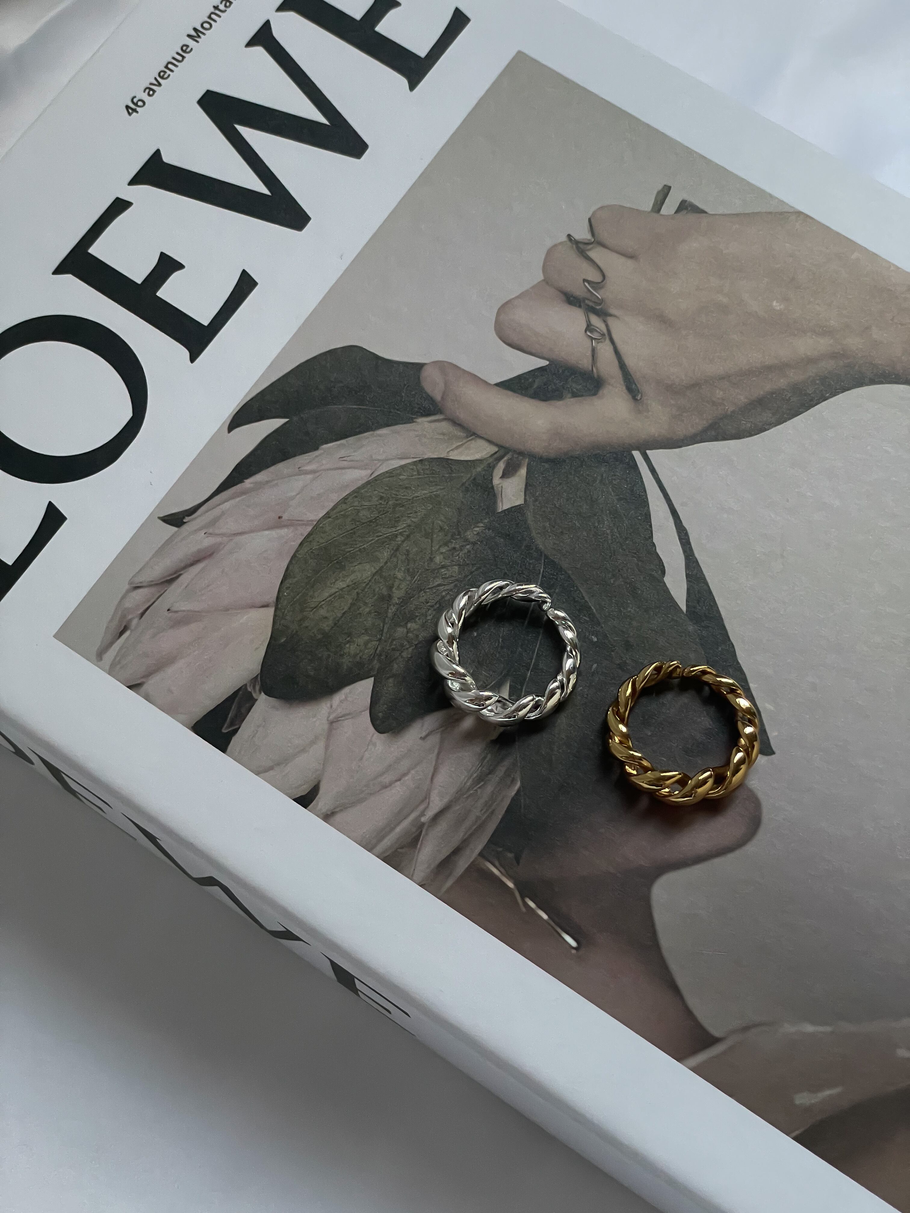 ツイストデザインのリングは、合わせやすく重ね付けも合うアイテム。