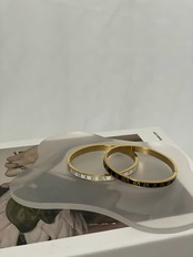 夏にももちろん、冬の長袖の上からでも合わせやすいシンプルでシックなバングル。